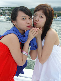然後呢, 不知是誰'發明'了跳海(!), 男孩們都好興奮地跳完一次又一次, 吳小姐看到又湊熱鬧要玩, 可是她又要驚又要玩, 我相信已經叫左佢半個鐘都有, 都係唔肯跳, 好煩囉! 最後我沒好氣自己去洗身洗頭, 她就在我沖身時自己跳了下海, 見證唔到真可惜。